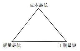 追求質量、成本和工期目標而消耗的成本和資源,都可視為廣義的交易費用。歷史上每一次采購方式及形式的變化,無不源于降低交易費用的內在要求。然而,如同經濟學的“不可能三角”一樣,完全意義上的質量最優、成本最低和工期最短亦不可能在一次采購活動中同時實現,這種關系詳見圖1-1。從現實意義上講,招標采購工作的核心,是圍繞采購需求,權衡質量、工期與成本三者之間的關系。